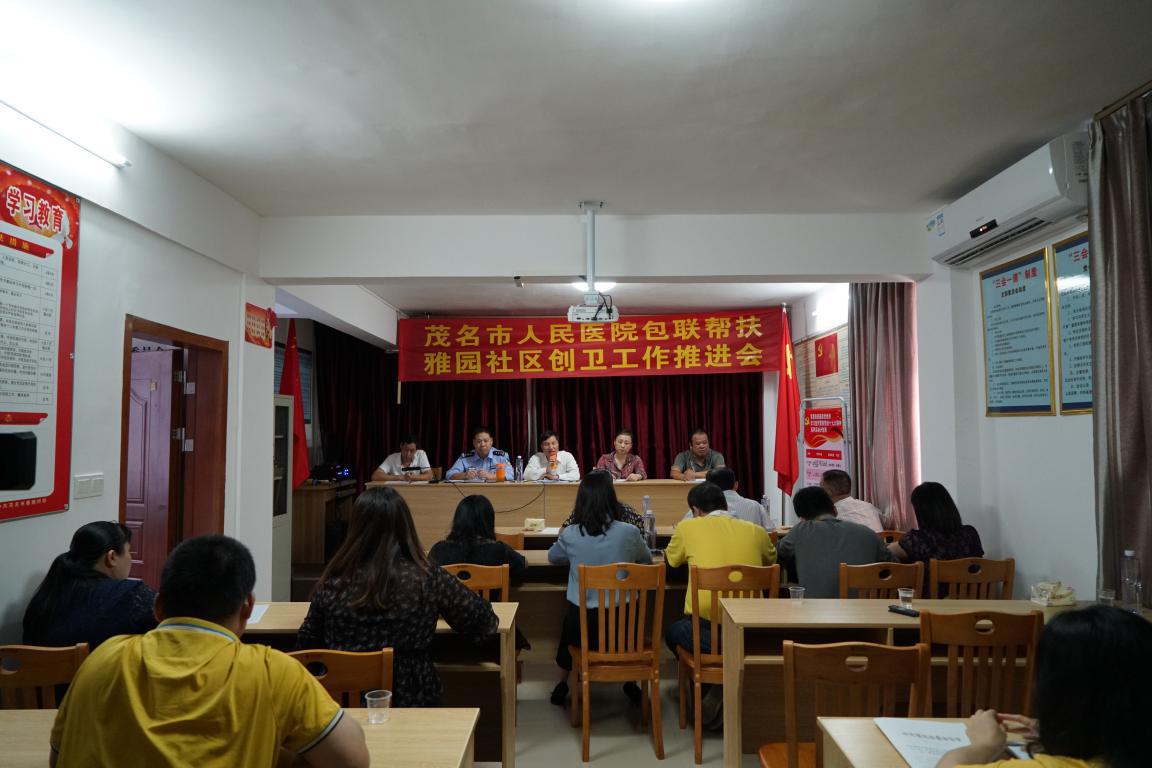 我院召开包联帮扶雅园社区创卫工作推进会 2018-11-07 10:11 11月6日下午,我院包联帮扶雅园社区创卫工作推进会在雅园居委会召开。我院领导张锋华、黄勇红,以及茂南区公安分局领导,我院相关科室负责人、官渡街道办以及雅园居委会主要负责同志参会。 会上,共同研究部署雅园小区下阶段的创卫工作,推动雅园居委会辖区更加科学、更加系统、更加有力完成创建国家卫生城市工作任务。 (文/图 李文辉)
