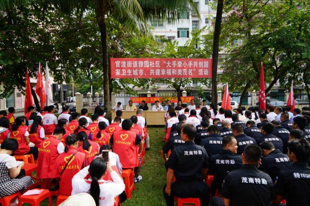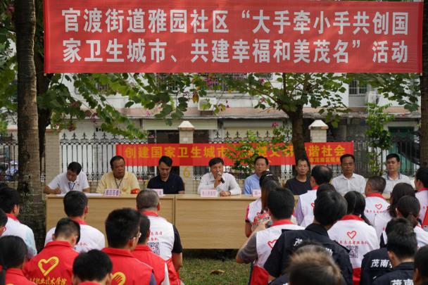 我院参加官渡街道雅园社区举办“大手牵小手共创国家卫生城市、共建幸福和美茂名”活动 2018-11-09 00:00 11月9日下午,官渡街道雅园社区举办“大手牵小手共创国家卫生城市、共建幸福和美茂名”活动,我院是包联帮扶官渡街道雅园社区创卫工作单位,我院党委书记张锋华出席,并带领三十多名医院志愿者参加活动。 (文/图 李文辉)