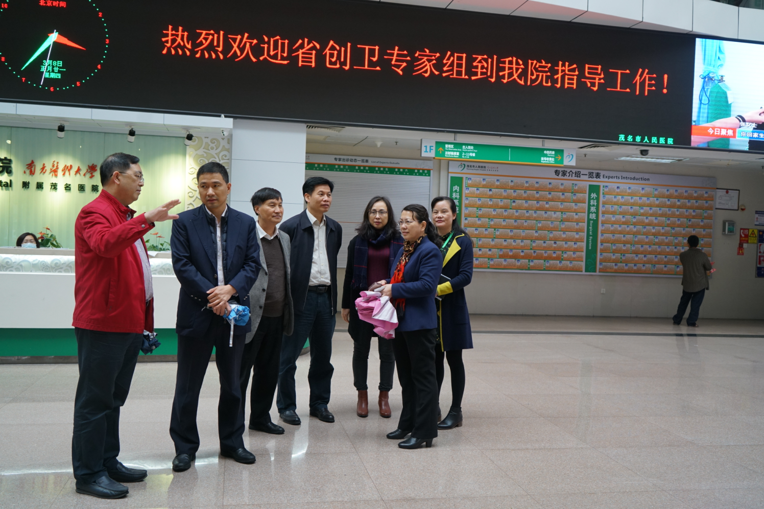 省创卫专家组到我院指导工作 2018-03-15 00:00 3月8日下午,省创卫专家组在市卫计局领导和我院领导的陪同下,现场查看了医院一门诊、感染科门诊、医疗垃圾暂存站等,听取我院领导汇报创卫工作情况,并交流了创卫工作意见。专家组对我院当前创卫各项工作给予了充分肯定,并提出进一步做好创卫各项工作的指导意见和建议。 现场查看医院创卫工作和听取汇报 查看医院感染科门诊 查看医院医疗垃圾暂存站 交流创卫意见