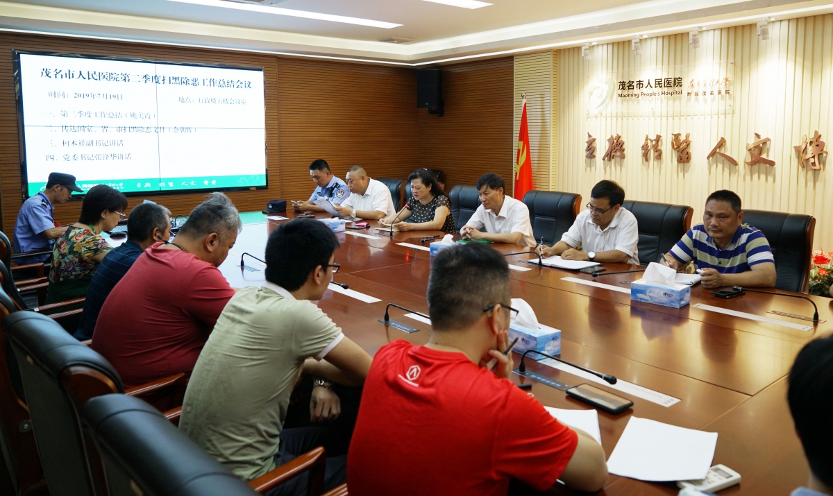 我院召开会议扫黑除恶加大工作力度 2019-07-20 15:10 7月19日,我院召开扫黑除恶会议,会上对2019年第二季度扫黑除恶工作作出总结,并共同学习了国家、省、市、局扫黑除恶文件精神。会上,医院党委副书记柯木祥表示扫黑除恶排查工作组还需继续加大工作力度,把工作做到更细、更好。医院党委书记张锋华对医院扫黑除恶工作表示肯定,强调扫黑除恶工作的重要性,要结合医院的实际情况大力开展扫黑除恶工作,打造舒适的就医环境,以优质的医疗服务提升群众满意度。 (文/姚美霞 图/钟钧宇)