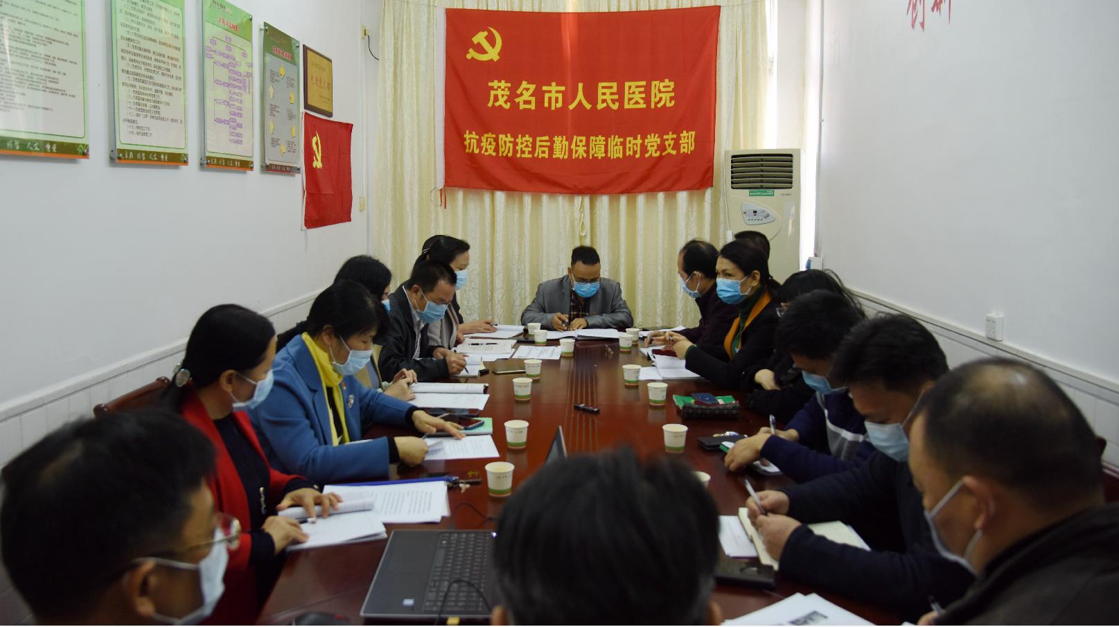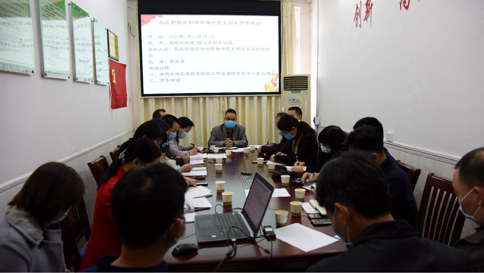 【部署落实】我院党委召开抗疫防控临床临时党支部和抗疫防控后勤保障临时党支部的工作专题会议 2020-02-21 17:24 2月21日,我院党委召开抗疫防控临床临时党支部和抗疫防控后勤保障临时党支部的工作专题会议,了解临时党支部及党员医务工作者的疫情防控工作情况、指导防控工作、解决工作难题、鼓舞士气,推动疫情防控落到实处,为打赢疫情防控阻击战提供坚强组织保证。医院党委副书记柯木祥参会。(雷晶晶)