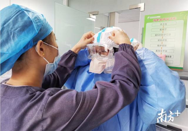 进入隔离病房前,医护人员要严格按照流程规范穿着好防护服、隔离衣。刘栋铭 摄