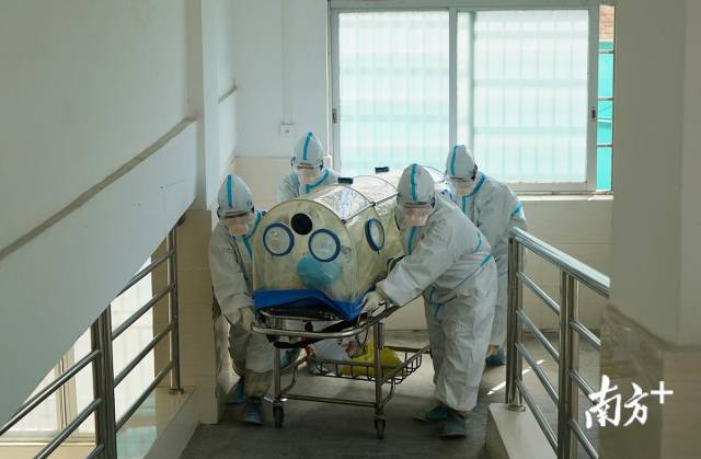 “患者躺在负压担架里合起来有两三百斤重,光下楼就要花十几分钟,一趟下来,全身湿透。”去年刚毕业的朱志波,是感染科唯一的男护士,他直言推患者送检是他“最累”的时候。