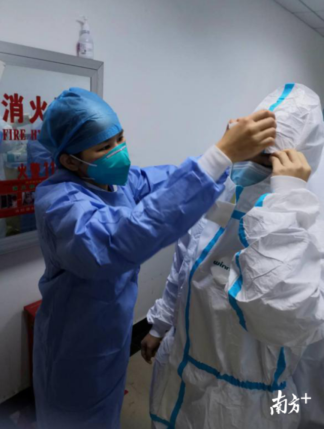 正在穿防护服的刘旺燕。