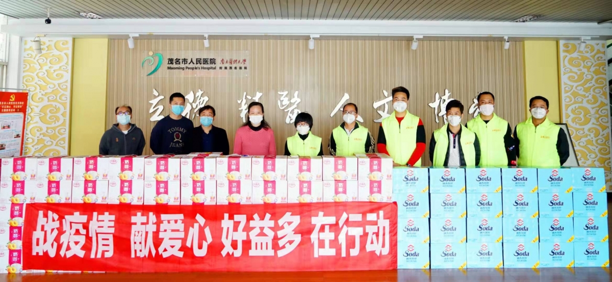 【社会支持】茂名市金来达商贸有限公司为我院抗疫一线医务人员捐赠奶昔200箱 2020-02-03 15:09 今天上午,茂名市金来达商贸有限公司心系抗疫一线医务人员,捐赠了好益多奶昔200箱,舒维苏打水150箱。为我院抗疫一线医务人员送来爱心支持。