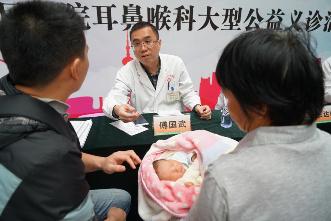 义诊现场,由我院耳鼻喉科主任周振劲,产前诊断中心副主任刘传勇,耳鼻喉科副主任傅国武,耳鼻喉科副主任医师张达群,耳鼻喉科主治医师钟启龙等5名专家组成的义诊团队,为广大群众和听障、耳廓畸形病患现场咨询,旨在及时发现新生儿听力障碍并采取有效干预措施和康复训练,普及耳廓畸形概念,提供有效的治疗建议。活动现场免费提供前60名新生儿耳聋基因芯片筛查和诊断检查、新生儿耳声发射检查、新生儿耳廓形态筛查以及中耳疾病诊断及咨询等。专家还通过现场演讲的形式(周振劲主任演讲《听力健康与筛查》;傅国武副主任演讲《新生儿耳廓畸形无创矫正》),向广大群众宣传听力健康及听力筛查的必要性,普及新生儿耳廓畸形矫治的重要性,动员更多人对听力健康及新生儿耳廓形态的重视。