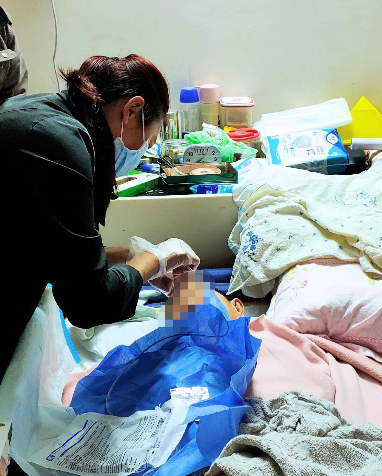 来到柯姨家中后,陈小红护长首先查看评估患者,柯姨的营养状况和精神状况也不错。陈小红护士长告知家属流程和风险,并签署了操作同意书后,她凭借丰富的临床经验,顺利地为患者留置了胃管,再三确认胃管在胃内后,耐心讲解长期卧床及鼻饲的注意事项,这才放心地离开。