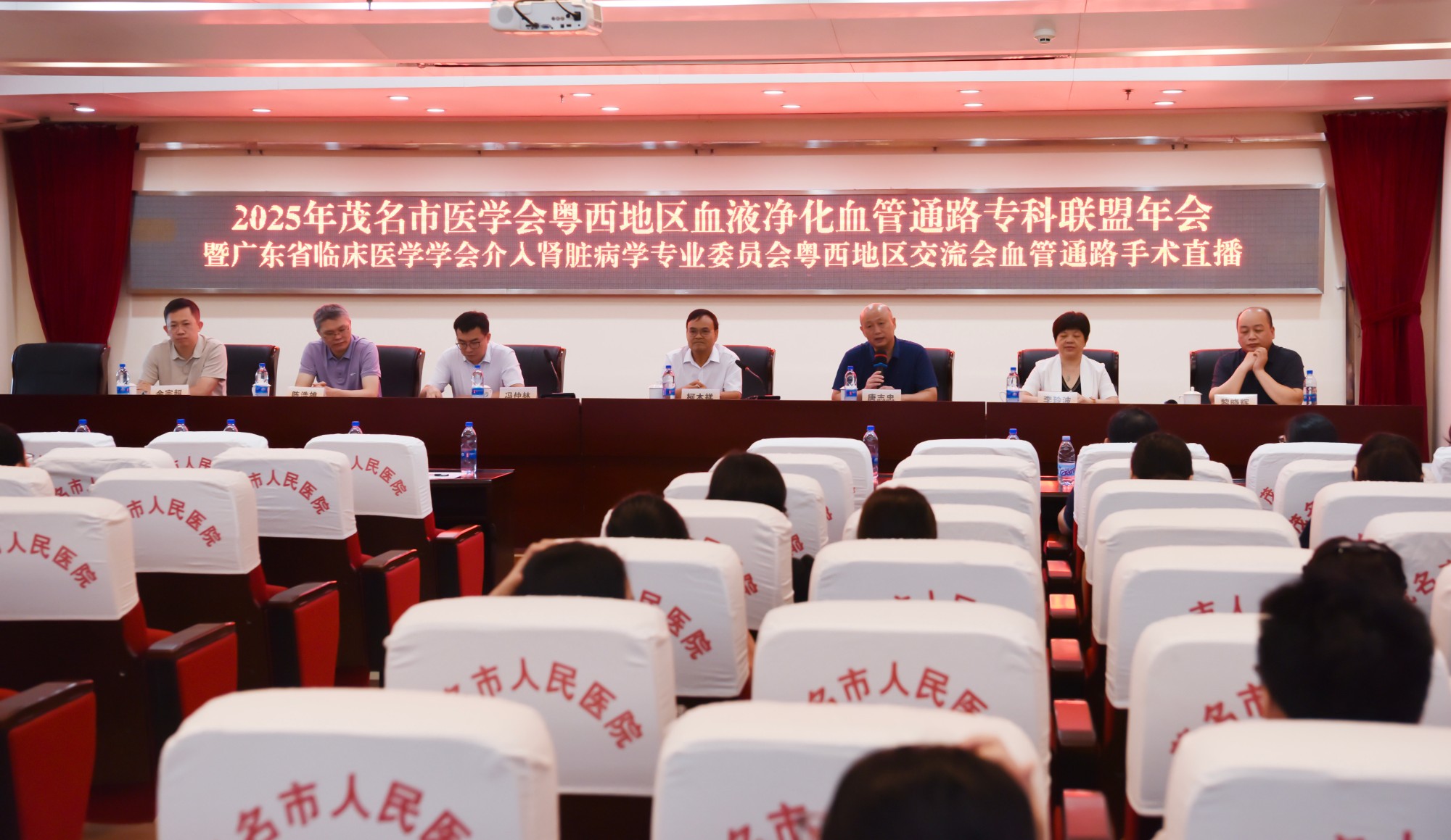 为了促进粤西地区肾脏病学科的发展,茂名市医学会粤西地区血液净化血管通路专科联盟和广东省临床医学学会介入肾脏病学专业委员会于6月28日上午在我院召开“2025年茂名市医学会粤西地区血液净化血管通路专科联盟年会暨广东省临床医学学会介入肾脏病学专业委员会粤西地区交流会血管通路手术直播”会议。茂名市医学会会长柯木祥、我院副院长唐志忠出席会议,来自粤西地区各医疗机构的肾脏病学医护人员近200人参加了此次会议。我院肾内科二区主任黎晓辉主持会议。