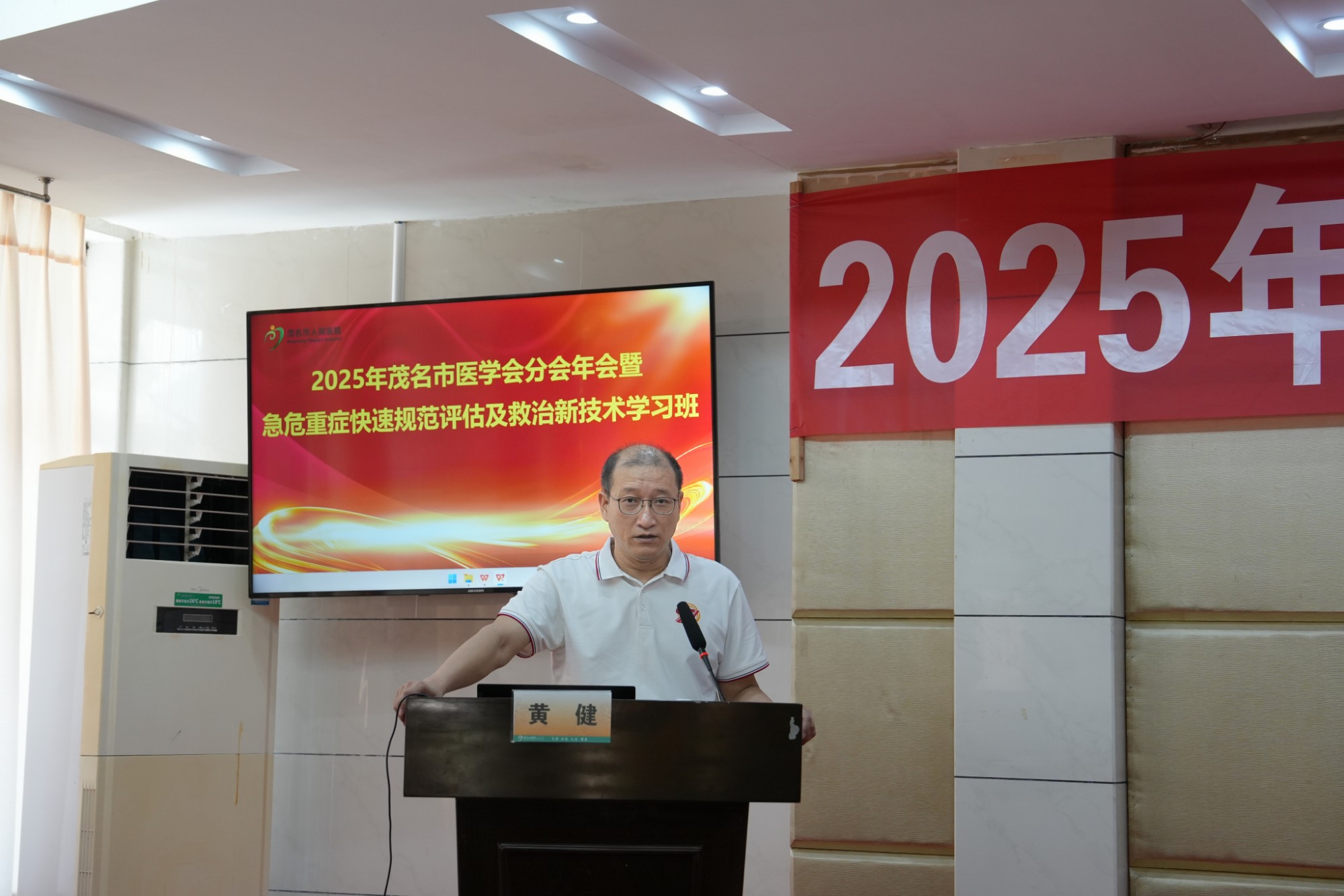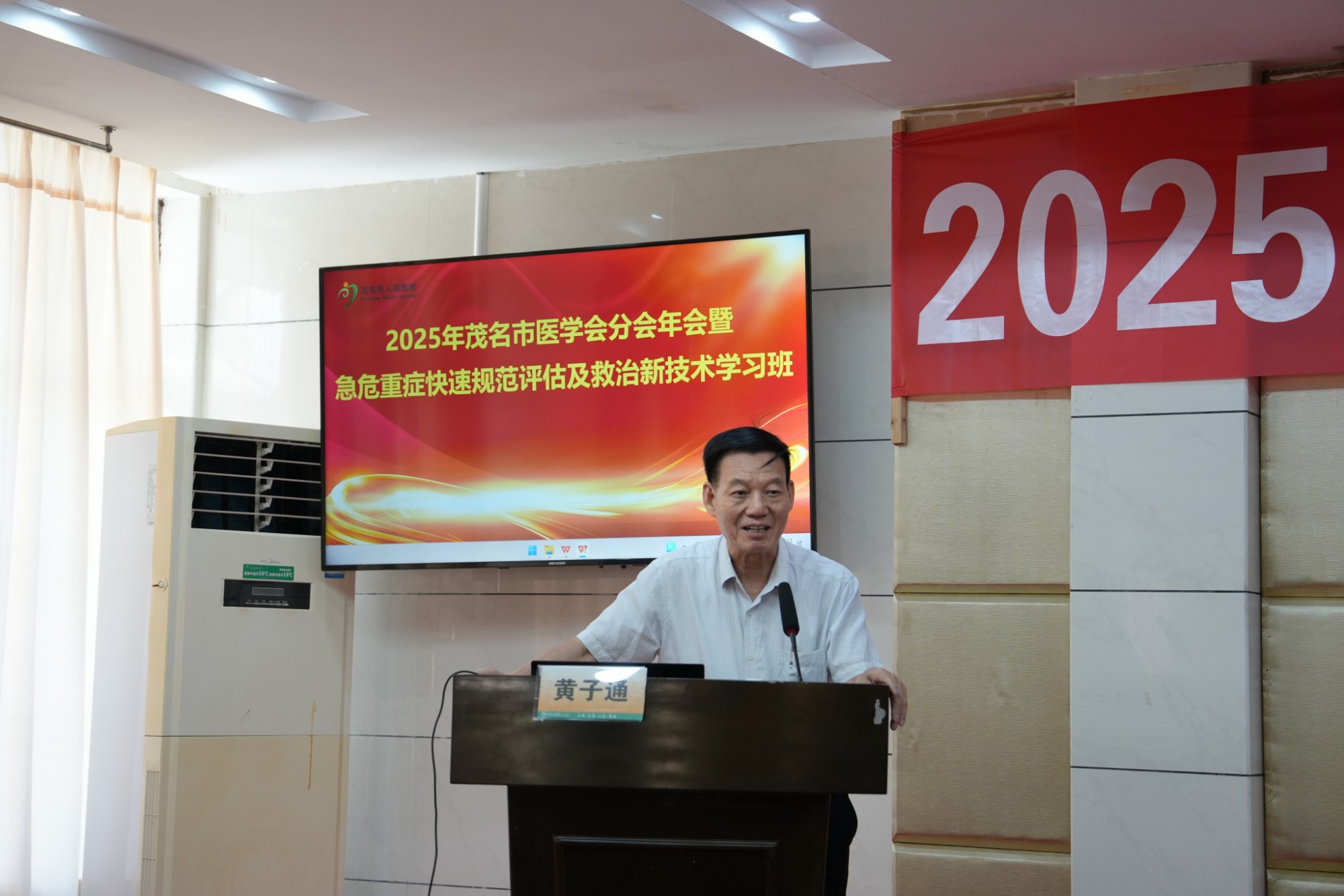 为进一步提升茂名地区急危重症医学诊疗水平,加强与省级急重症医学领域前沿成果及经验的学术交流,6月28日,由省卫生信息网络协会急诊与复苏分会、市医学会主办,我院承办的“2025年茂名市医学会急诊医学分会年会暨急危重症快速规范评估及救治新技术学习班”顺利举办。省医师协会急诊医师分会原主委黄子通,市医学会会长柯木祥、我院副院长黄健出席会议并为会议致辞。来自茂名地区多家医疗机构急诊医学领域相关专家、学者100余人参会。会议由我院急诊科主任梁宇强主持。