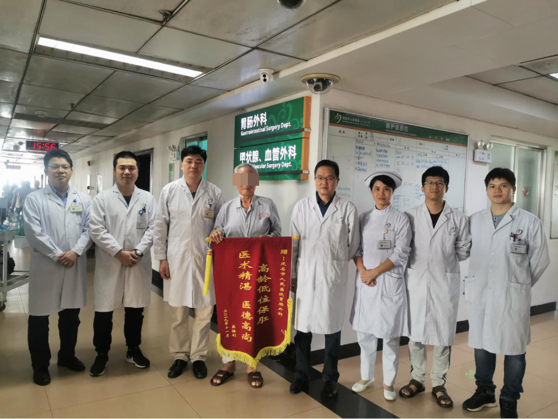 目前,我院胃肠外科对直肠癌病人的低位保肛治疗率已达91%,超低位直肠癌保肛手术保留了病人完整的肛管和肛门结构,病人不仅能保留正常排便功能,生活质量得以保证,同时,心理压力降到最低。作为一个完整的社会人,病人可以最终回归社会和奉献社会。