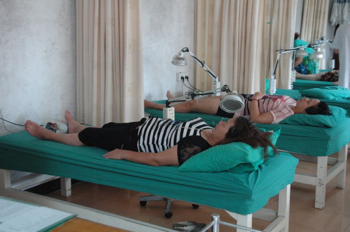 在该院中医针灸科,记者还见到很多面瘫的病人,据洪主任介绍,针灸可以独立治疗面瘫,一般一个月左右,百分之九十以上的病人都可以达到治愈的目的。