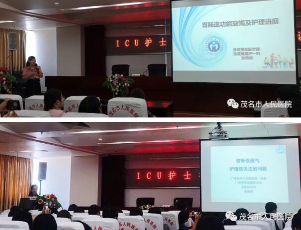 会议结束后,由茂名市护理学会主办、我院重症医学科承办市级继续教育项目ICU护士核心能力提升培训班,邀请了广东省人民医院、广州医科大学附属第一医院以及中山医科大学附属第一医院张秀浓、李海艳、陈丽花、李丽琼共4位ICU护理专家授课。专家们就近年在危重病人管道安全、胃肠功能监护、营养护理、俯卧位通气及机械通气早期康复的新理念、新技术等展开学术报告。我院梁慧屏、罗艳等ICU护士长对课程作精彩点评,旨在共同推广ICU护理规范及专家共识,促进各医院ICU护士成长,提高茂名市危重症护理整体水平。
