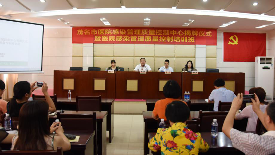 为进一步加强全市医疗机构医院感染管理工作,建立医院感染管理控制体系,规范各级各类医疗机构医院感染管理水平,茂名市医院感染管理质量控制中心揭牌仪式暨医院感染管理培训班于4月25日在我院5号楼4楼会议室举行。我院副院长麦远其、茂名市卫生健康局医政科科长朱一丹,我院医院感染管理科贺双奇科长出席了揭牌仪式。同时还有来自茂名市各医疗机构共110多名医务人员参加本次会议。