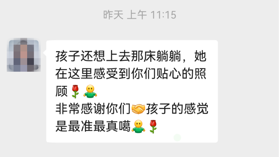 “感谢小涵及家属对小儿外/疝外科医护团队深深这份真挚的信任与认可。”这是一份正能量的传递,让更多的人知道这里有一群默默奉献、医术高超的医护人员,他们的付出和努力,值得被每一个人铭记和尊重。该科护士长莫莲霞微笑着回应道:“我们科室会继续用同样的专业与热忱服务每一位患者,全力为患者的生命健康保驾护航。”