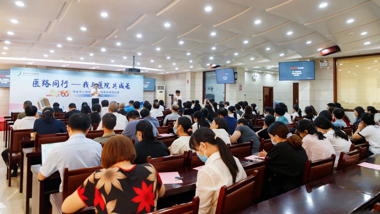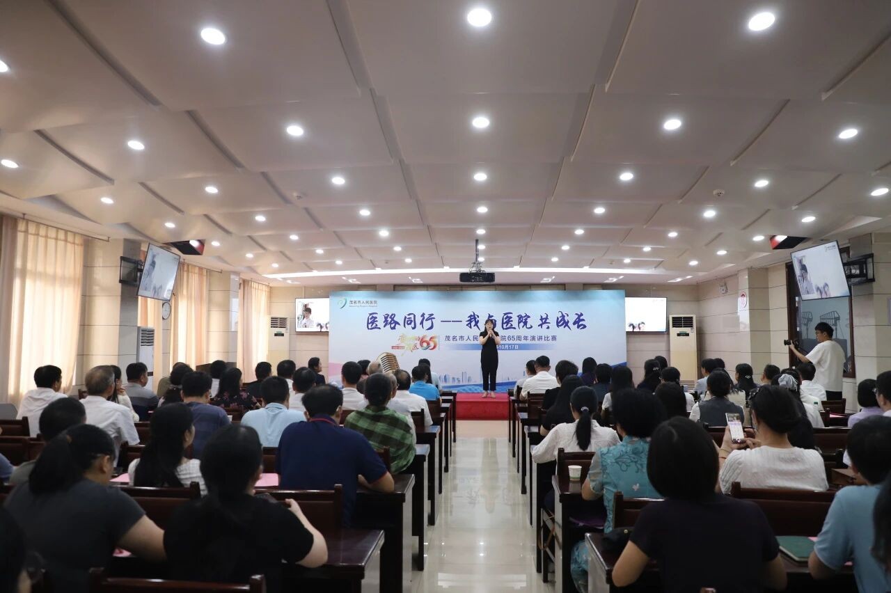 为庆祝建院65周年,弘扬医院砥砺前行的奋斗历程,传述推进医院高质量发展过程中的生动实践故事,增强全院职工的凝聚力和归属感、引导和激励广大干部职工担当作为、干事创业,10月17日下午,茂名市人民医院举办“医路同行--我与医院共成长”主题演讲比赛决赛,16名来自医院外科、内科、医技、门急诊及行政系统的选手用最真挚的声音,深情讲述与茂医“同呼吸、共命运”的动人故事。