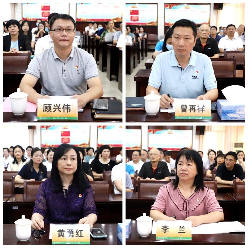 ▲院党委书记顾兴伟、党委专职副书记曾再祥、总会计师黄勇红,副处级干部、工会主席李兰出席会议
