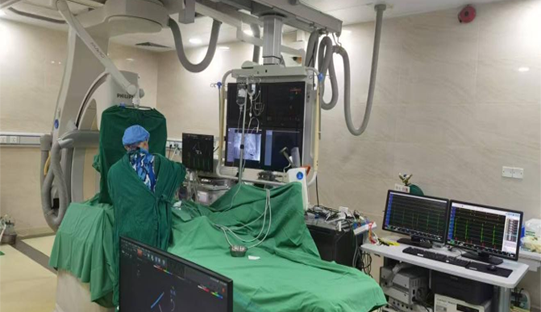 ▲茂名市人民医院心血管专家为张伯行射频消融术