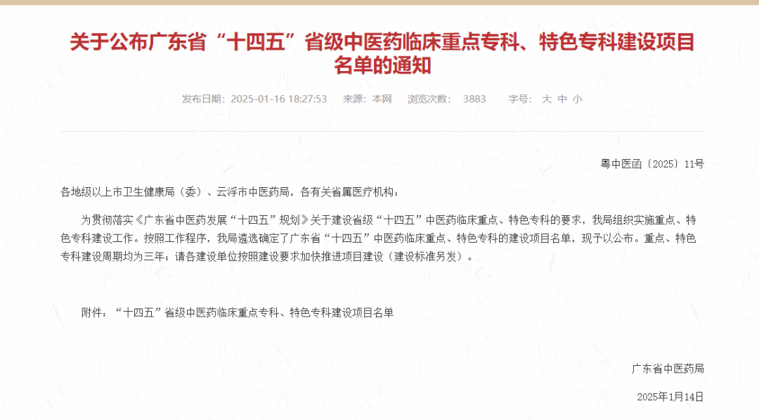 广东省省级临床重点专科