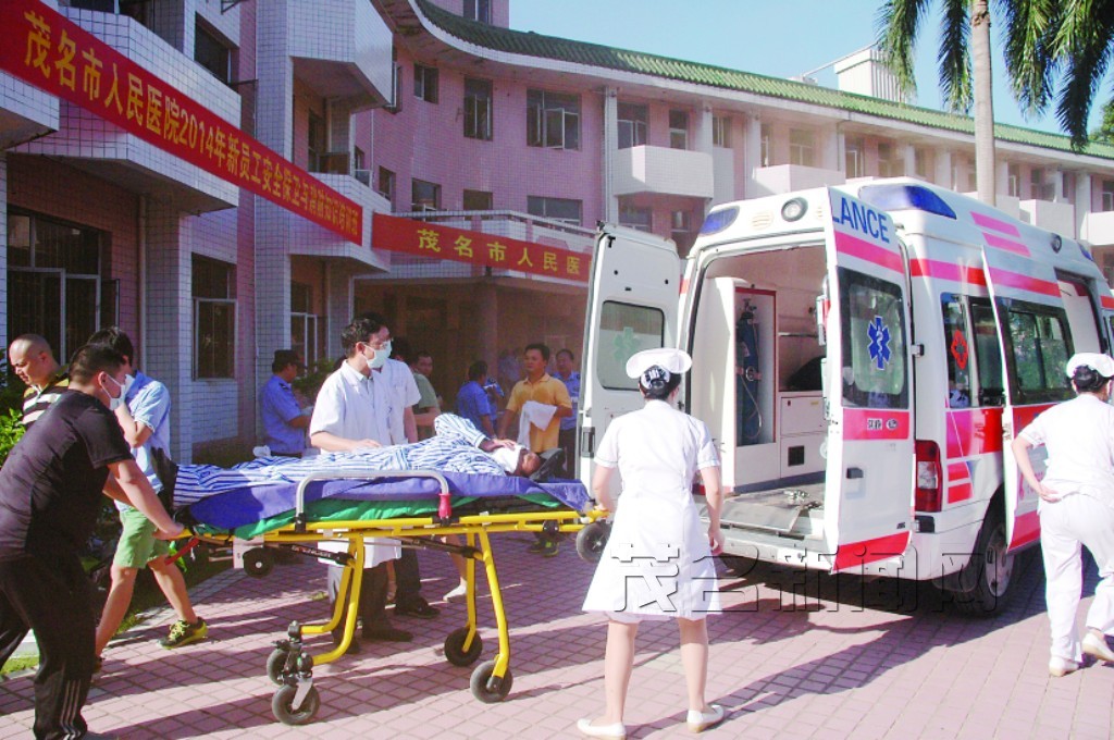 昨天下午,茂名市人民医院3号楼冒起冲天浓烟,瞬间警笛嘶鸣,楼内大量医患人员在保卫人员的协助下,紧张有序地从病房向楼梯口方向迅速逃生,安全保卫、消防人员火速赶赴现场进行扑救。这近似真实的情景,正是茂名市人民医院组织的大型消防演习中的一幕。