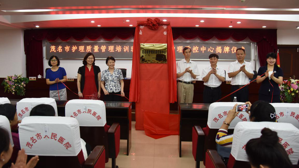 广东省护理质控中心主任、省护理学会理事长成守珍,广东省护理学会秘书长周丽华、茂名市卫计局副局长黎健智、我院党委书记张锋华、我院副院长麦远其、茂名市护理学会理事长盘娟,茂名市护理质控中心主任、我院护理部负责人谢静誉出席揭牌仪式。