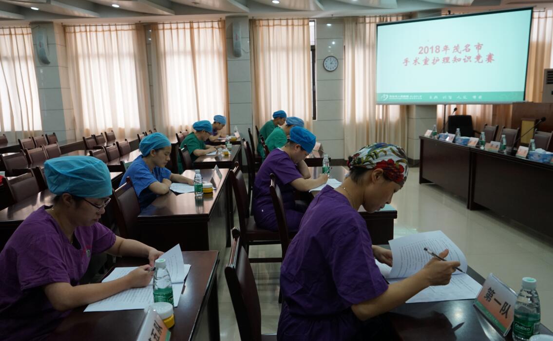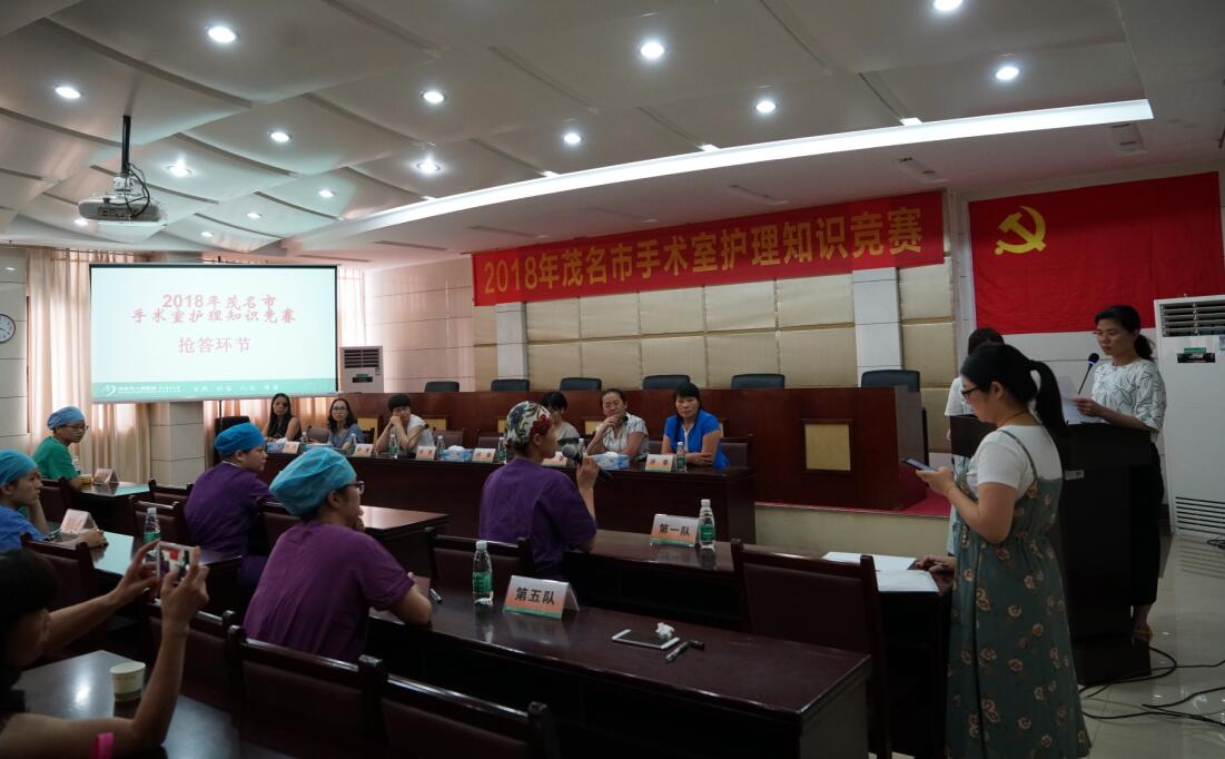 我院举行2018年茂名市手术室护理知识竞赛 2018-06-12 18:04 6月12日,为进一步提高手术室护士的理论知识水平,为患者提供更加优质的护理服务。“2018年茂名市手术室护理知识竞赛”在我院举行,全市共有八家医院参加,我院手术室护士李彩基荣获一等奖,并代表茂名市参加广东省比赛。 (文/图 李文辉) 笔试环节: 抢答环节: 颁奖并合影: 赛后合影: