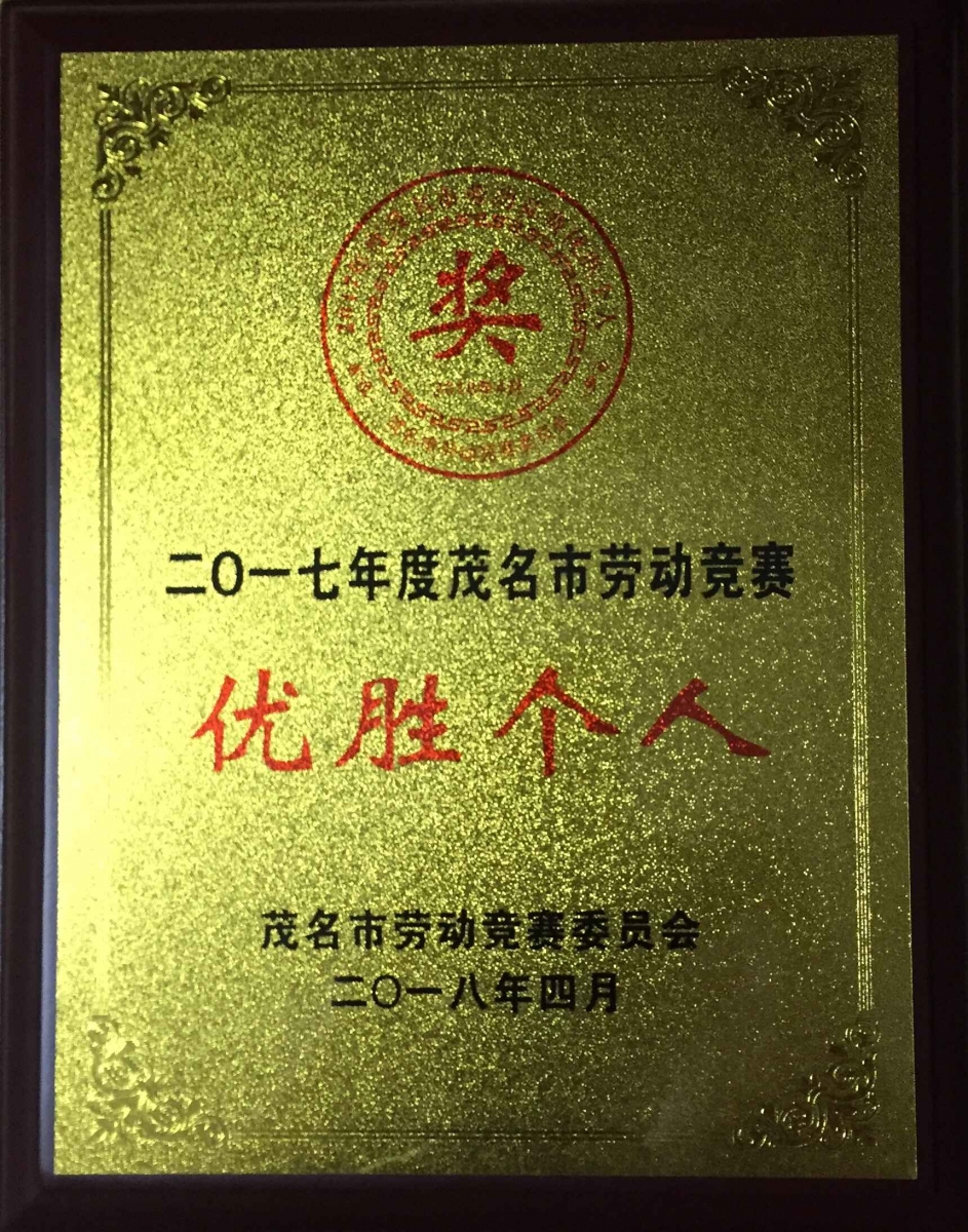 我院护士被评为2017年度茂名市劳动竞赛“优胜个人” 2018-05-09 08:28 我院护士被评为2017年度茂名市劳动竞赛“优胜个人” 日前,茂名市劳动竞赛委员会评选表彰了一批在2017年劳动竞赛中成绩显著的单位和个人,我院康复科护士邓美婷荣获“2017年度茂名市劳动竞赛优胜个人”称号。 邓美婷表示,荣誉只能表达过去,并不代表未来,她会继续努力,继续在自己热爱的岗位上发光发热,为医院护理工作的发展作出自己的贡献。 (文/林显滨 图/邓美婷)