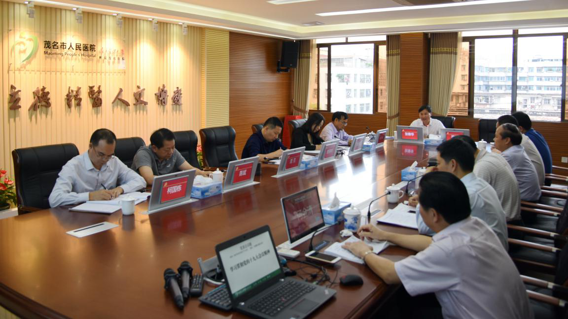 10月30日,茂名市人民医院党委组织院领导班子和党员干部,深入学习并全面贯彻党的十九会议精神,进一步做好医院工作。会议由党委书记张锋华主持,茂名市人民医院领导班子成员、相关党员干部参加了会议。