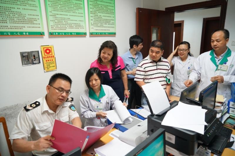 检验科等场所,对医院安全生产、消防安全、危化品管理、仪器设备管理、传染病防控、垃圾污水处理等方面进行现场督导和资料查看。检查组表示我院作为茂名地区的龙头医院,医疗安全、安全生产、消防安全、危化品管理等工作一直做的很好,但是仍要居安思危,严格按照国家及省市各项相关文件政策,以创建“平安医院”为目标,认真落实各项安全生产工作。