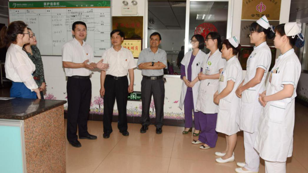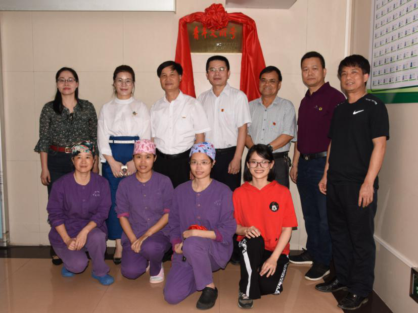 4月19日下午,团市委书记何龙江、茂名市卫健局团委书记陈明名、我院党委书记张锋华、党委副书记柯木祥共同到重症医学科省级“青年文明号”、妇科市级“青年文明号”、麻醉手术科市级“青年文明号”为它们分别举行揭牌仪式。相关“青年文明号”集体的代表参加了本次揭牌仪式。