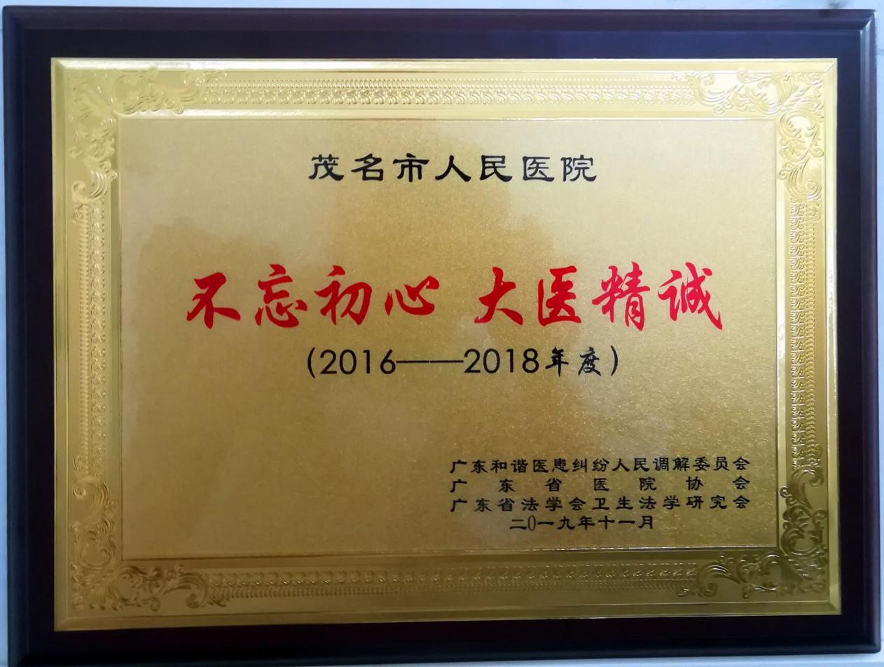 11月16日,我院荣获由广东省和谐医患纠纷人民调解委员会颁发的处置医患纠纷、强化医疗安全和风险防范的“不忘初心、大医精诚”先进单位称号。其主要表彰我院积极在构建医疗风险共担机制与和谐医患关系方面做出的成绩。