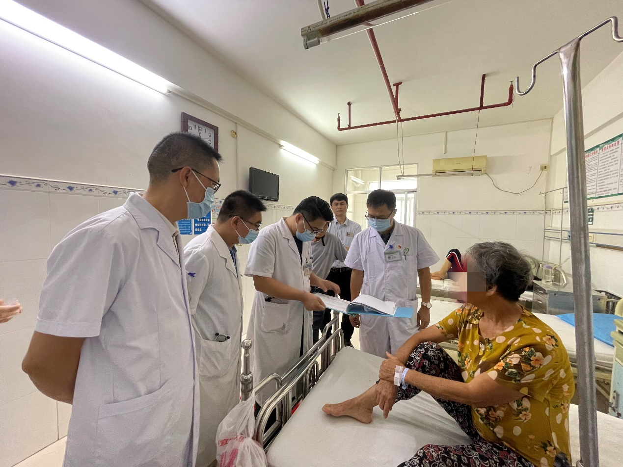 授课结束后,各位专家针对性地开展帮扶查房,亲自为住院患者查体并作教学示范,专业解读检查报告,详细分析病因,从专业角度提出更优的治疗方案。