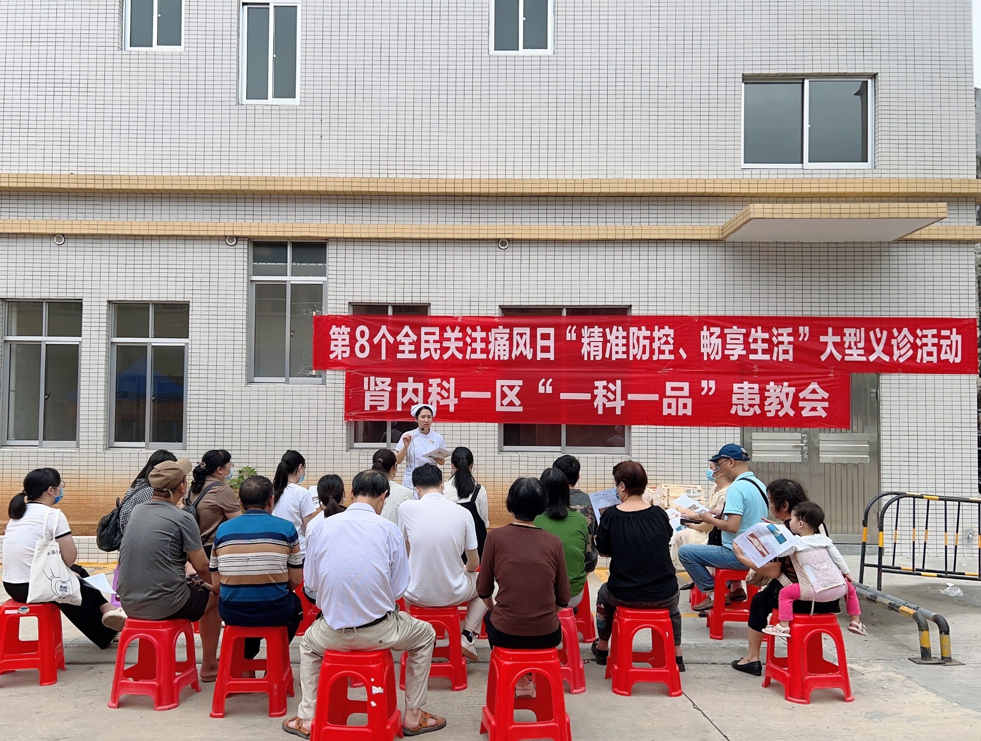 现场还有痛风防治知识科普患教会,由茂名市人民医院肾内科一区护士长张莹莹深入浅出地为群众讲解尿酸形成痛风石的过程,还准备了精彩的有奖问答环节,群众们参与热情高涨、踊跃抢答,并纷纷为活动点赞。