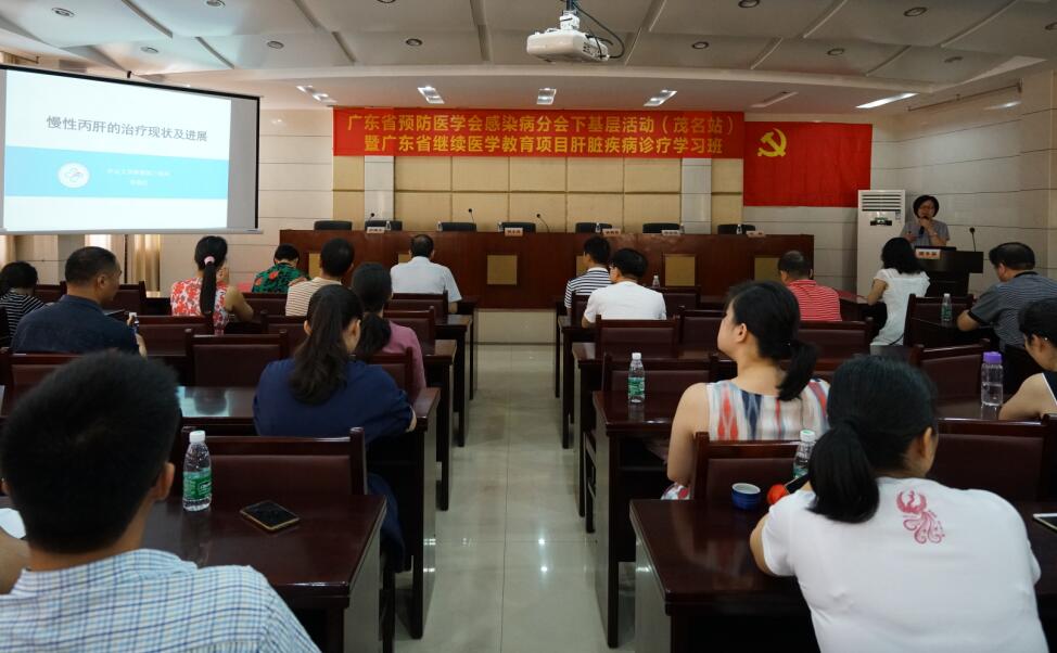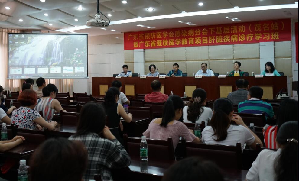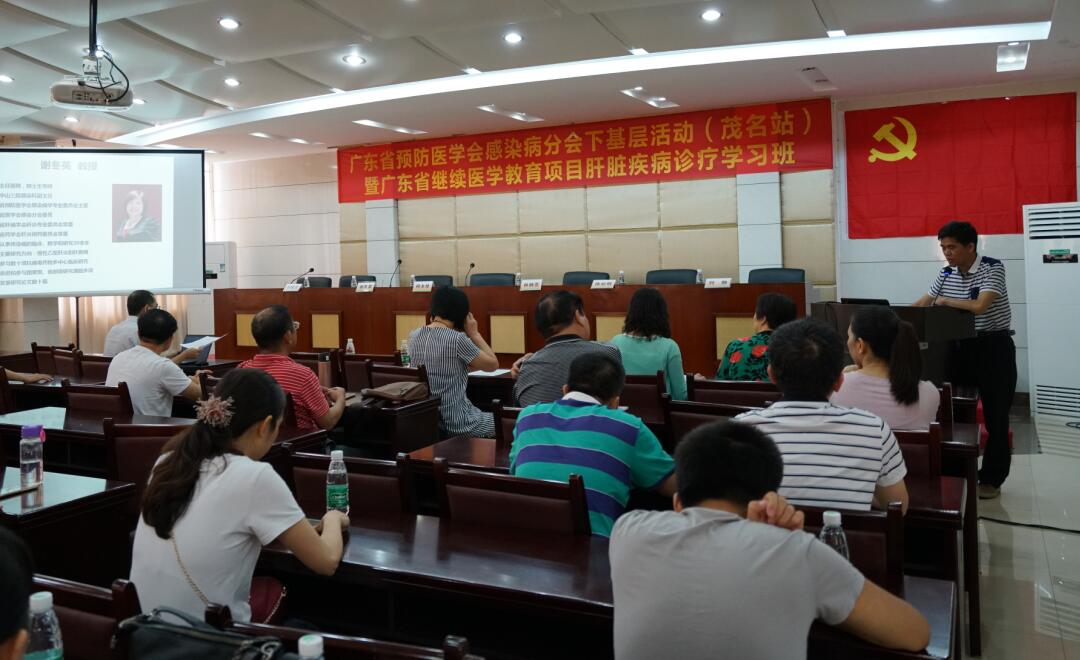 我院举行肝脏疾病诊疗学习班 提高感染性疾病诊治水平 2018-05-13 15:29 我院举行肝脏疾病诊疗学习班 提高感染性疾病诊治水平 5月13日上午,广东省预防医学会感染病学分会下基层活动(茂名站)暨广东省继续医学教育项目肝脏疾病诊疗学习班在我院举行,邀请了省内知名感染病学专家授课,进一步提高茂名地区感染性疾病、肝病医师的诊疗水平。我院党委副书记、茂名市医学会会长柯木祥出席活动。 (文/图 李文辉)