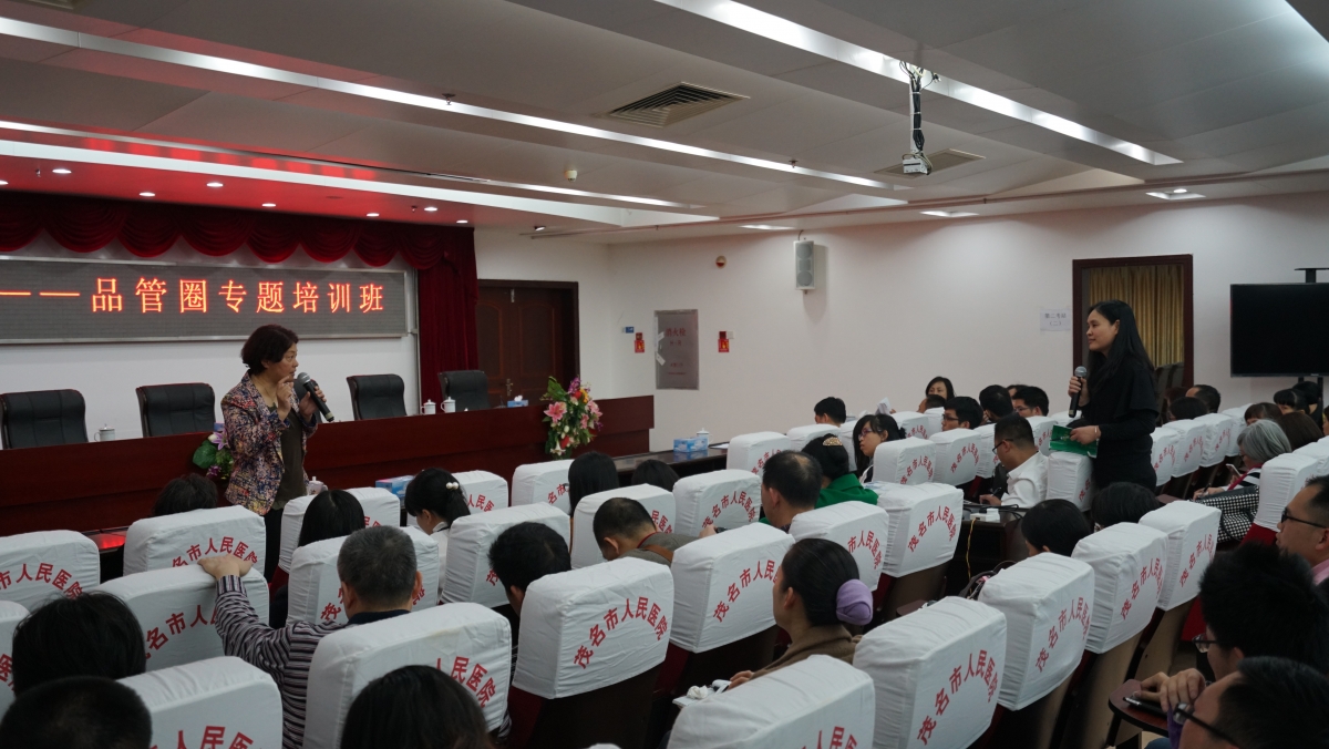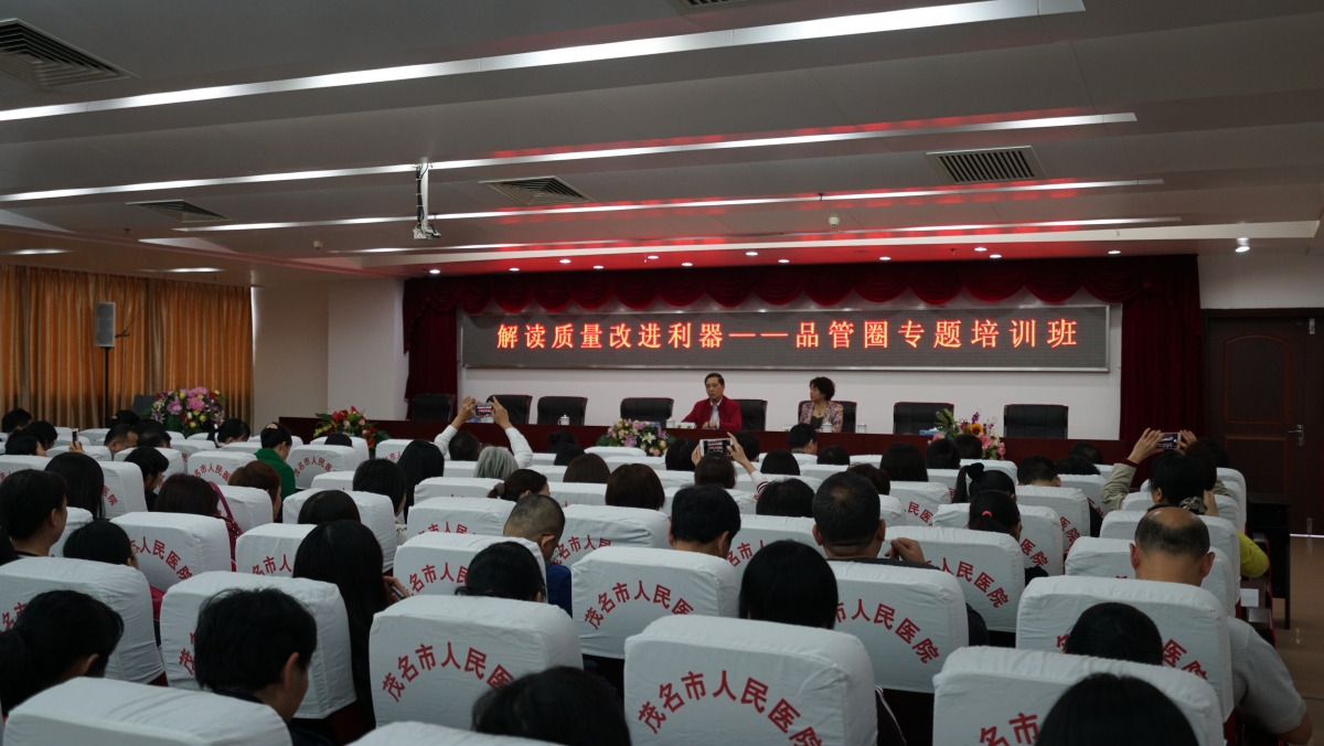 会议宣读了“三甲复审”工作实施方案,对“三甲复审”工作进行了动员和积极部署,动员全体干部职工在三甲复审工作中,以全院上下认识思想高度统一、决策指挥高度统一、行动步调高度统一的“三个统一”,把复审工作与学科建设、提高医疗护理质量和保证医疗安全结合起来,有计划、有步骤地完成复审工作。藉由“三甲复审”工作的开展,以评促改,进一步促进医院的内涵建设,提升医疗护理服务质量,增强医院的综合实力与核心竞争力。结合医院的发展需求和“三甲复审”工作的开展,为促进医院管理更加精细化,持续推进医疗护理服务质量不断提升,茂名市人民医院引进了促进医疗质量与安全持续改进的重要管理工具“品管圈”(简称QCC)。专门成立了以院领导班子成员为主导的活动领导小组,设立“品管圈”活动办公室,并根据科室性质分为医疗组、管理组、医疗门诊组和护理组,以分组形式对各临床科室和职能科室开展指导、培训和制定开展活动程序的工作,推广和实行全院性“品管圈”管理活动。旨在通过活动的有效开展,进一步提升医院整体形象,节约医疗成本,改善员工工作环境及工作方法,进而提高患者就诊满意度,让患者能够享受更高质量的医疗服务、更安全的就医环境。