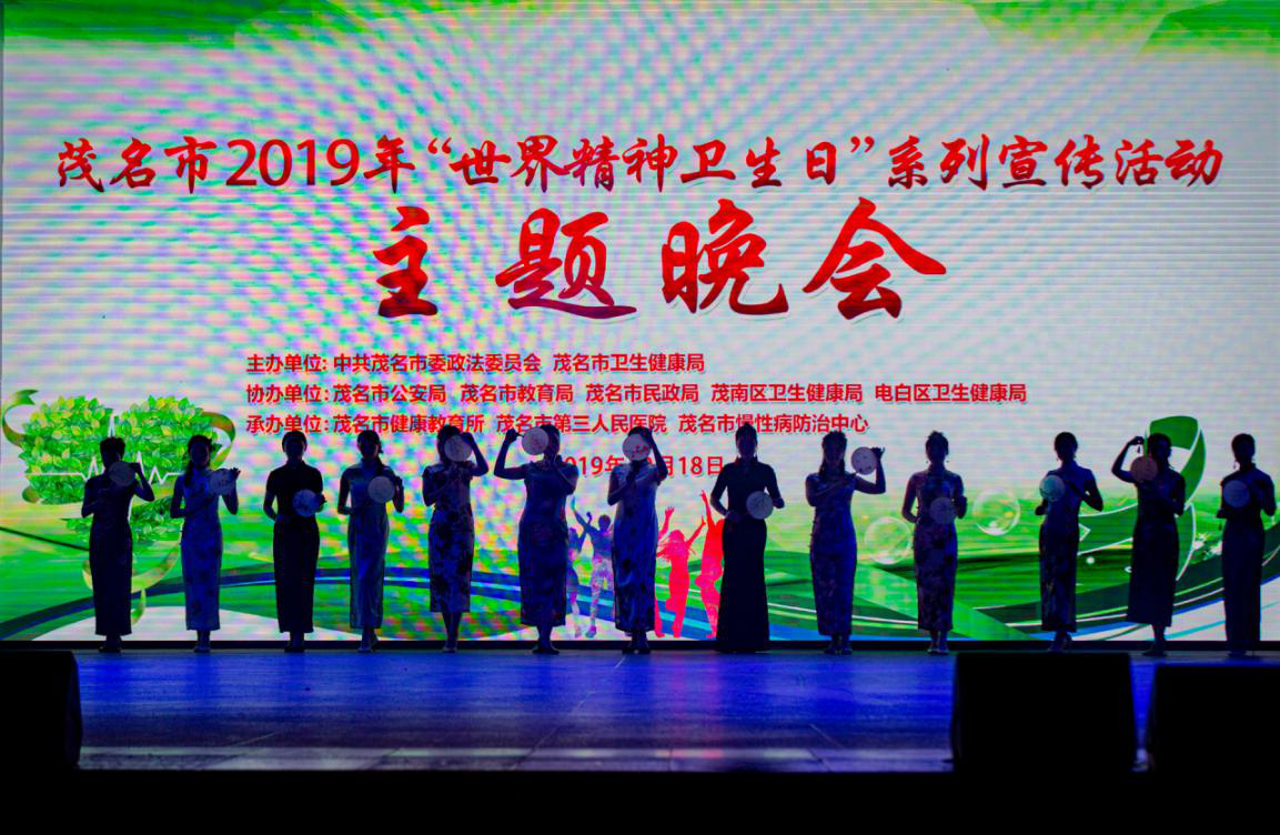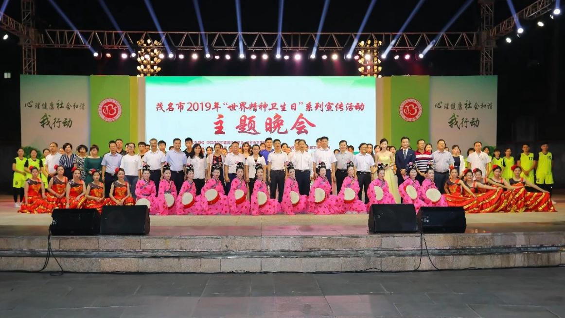 10月18日晚,由中共茂名市委政法委员会、市卫生健康局主办的茂名市2019年“世界精神卫生日”系列宣传活动主题晚会在市文化广场举行,茂名市委常委、政法委书记赵广辉,茂名市委政法委专职副书记林平,茂名市人民政府副秘书长吴再铭,茂名市卫生健康局党组书记、局长黄立红,我院党委副书记柯木祥等领导出席晚会。