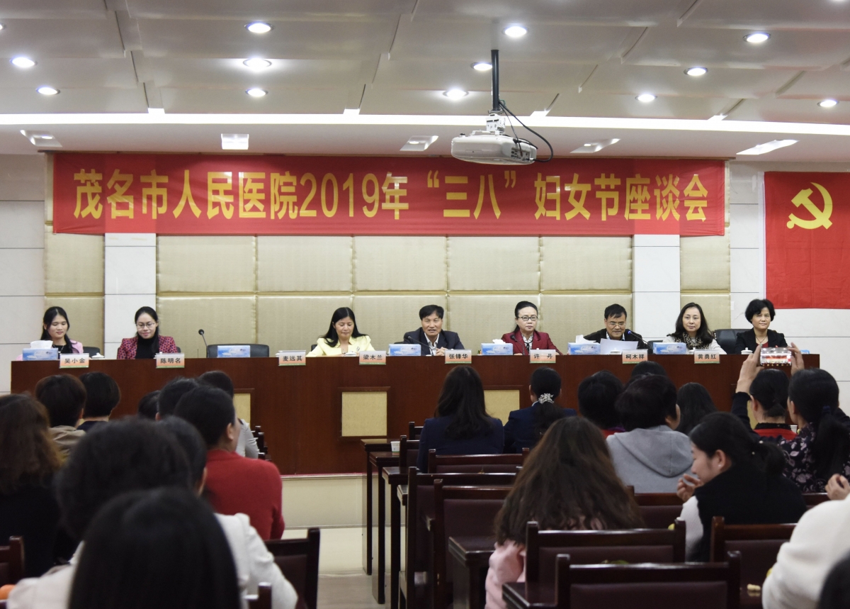 3月8日下午,我院举办“三·八”妇女节座谈会,茂名市总工会副主席许丹、茂名市妇联副主席梁木兰、茂名市卫健局人事科副科长陈明名、医院党委书记张锋华、党委副书记柯木祥、总会计师黄勇红以及医院部分女干部职工欢聚一堂,畅谈工作体会和生活感悟。会议由柯木祥副书记主持。