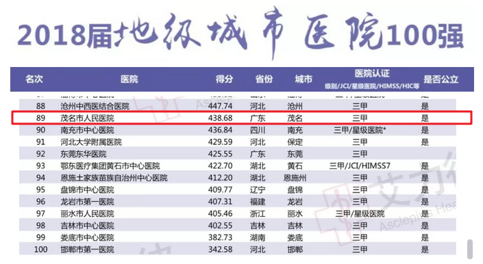 为我院点赞!连续三年跻身“中国医院竞争力·地级城市医院100强”榜单