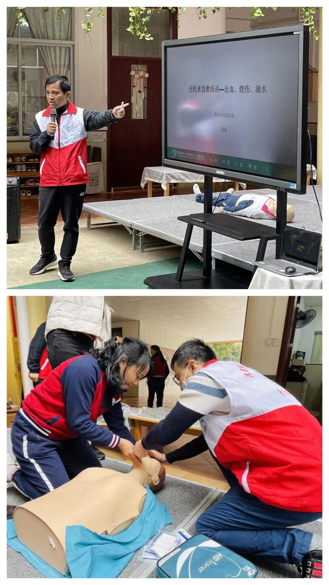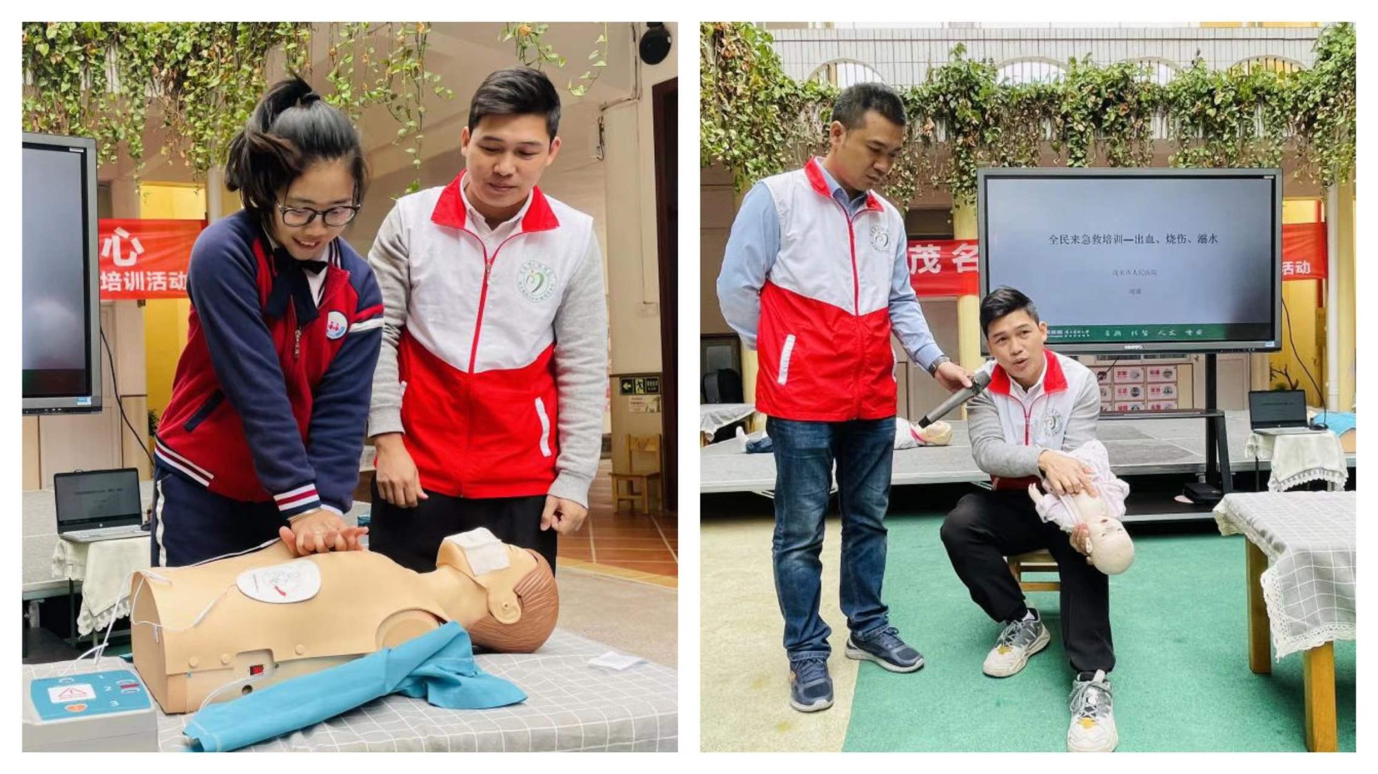 2022年1月13日,健康茂名行动之全民来急救培训队牵头,茂名市人民医院临床技能培训中心、健康广东行动志愿服务队茂名市人民医院分队组织专家队伍,走进茂石化文明幼儿园开展急救培训公益活动。该活动以“把握黄金四分钟,提升全民救援力”为宗旨,让全园教师、工作人员掌握基本的急救技能、让小朋友从小树立急救意识,提高急救水平,促进急救知识与技术的深入应用,降低心脏骤停的死亡率。